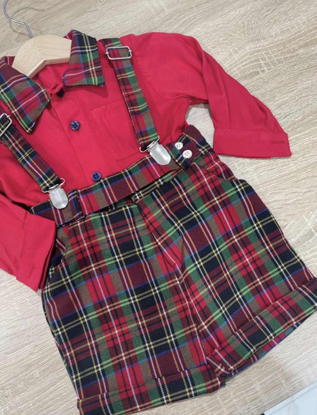 COMPLETO BAMBINO ROSSO CON BRETELLE E FANTASIA SCOZZESE